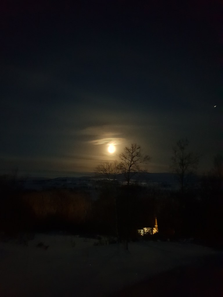 Jeg står her ute, under åpen himmel. Verden er helt stille.